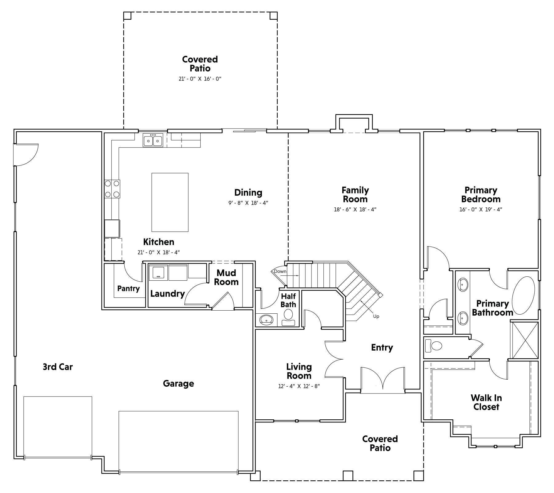 Square footage, layouts, elevations, and included features may vary and are subject to change. Renderings may show upgrades or optional items not included in base pricing, such as covered patios/porches, finished basements or garage configurations. Confirm details with your Home Center representative.